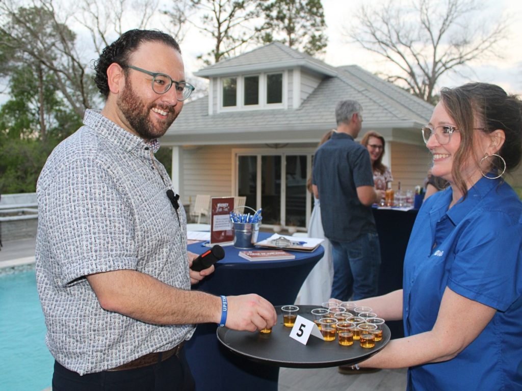 Guests enjoyed a guided whiskey tasting game featuring a curated selection of five different samples. Attendees put their palates to the test by guessing details such as price, proof, brand, and flavor profile, with points tallied at the end to crown the winner. It was a fun and engaging experience, and congratulations to our top whiskey connoisseur!